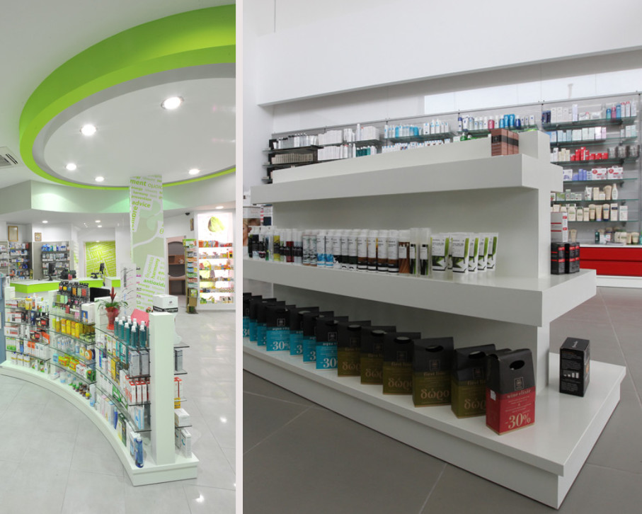 Ραφιναρίες, πάγκοι φαρμακοπωλείου και εργαστηρίου, πάγκοι ταμείου, φαρμακευτικά ψυγεία, γόνδολες και εκθετήρια προώθησης, σχεδιάζονται ειδικά για τον κάθε φαρμακοποιό ξεχωριστά ώστε να ταιριάζουν με τη φιλοσοφία του χώρου και να ανταποκρίνονται στις προσδοκίες των πελατών μας.